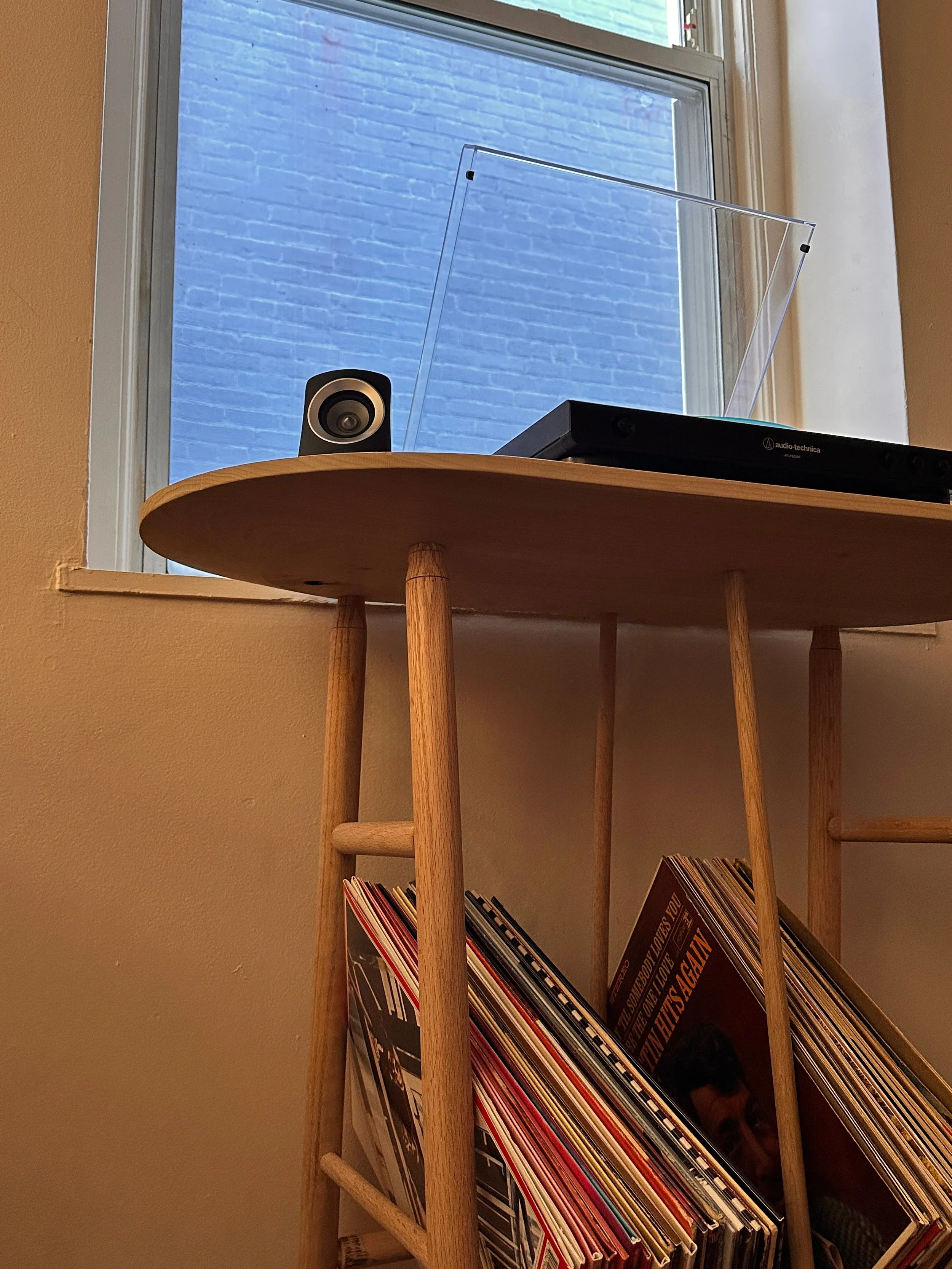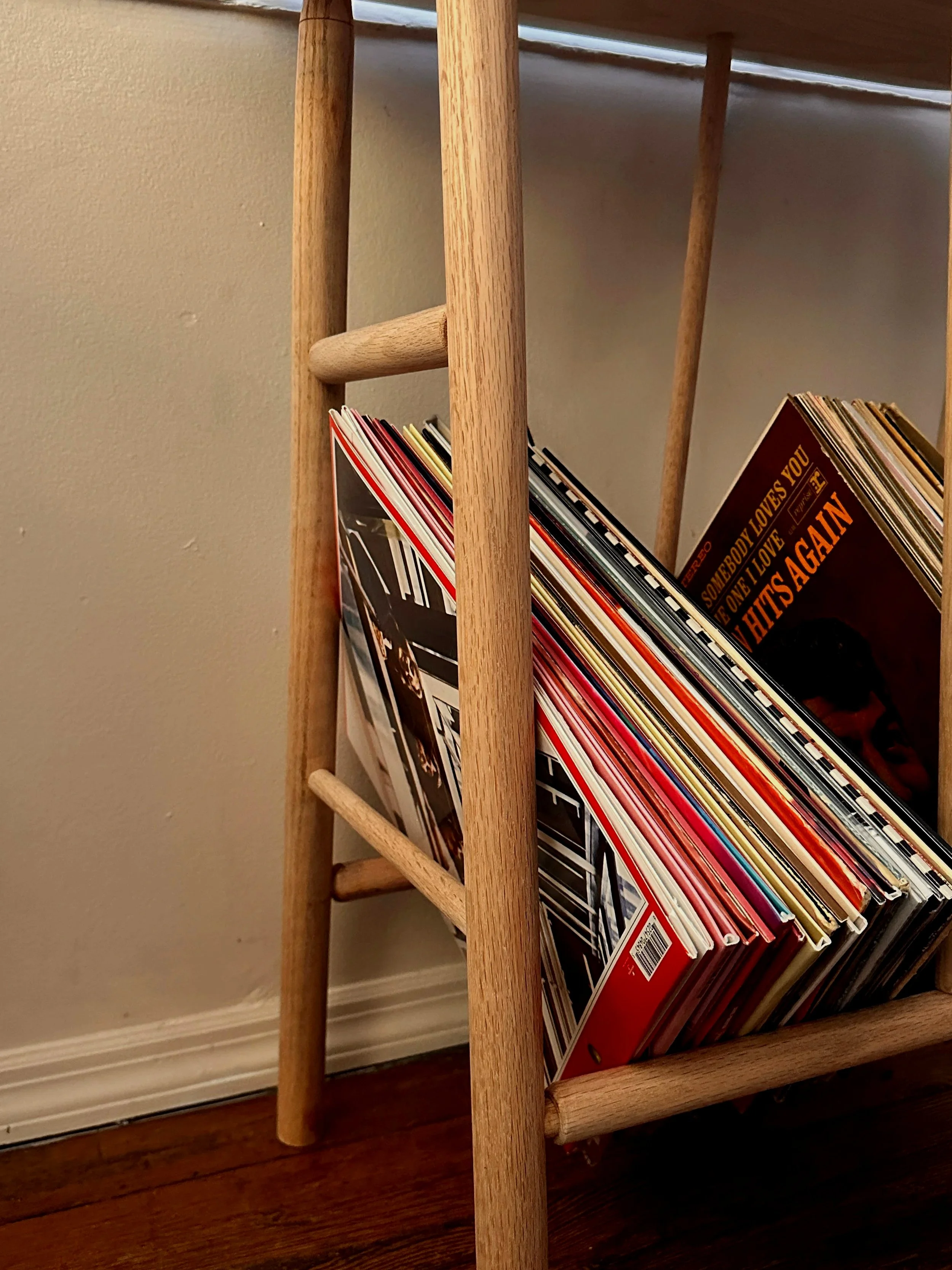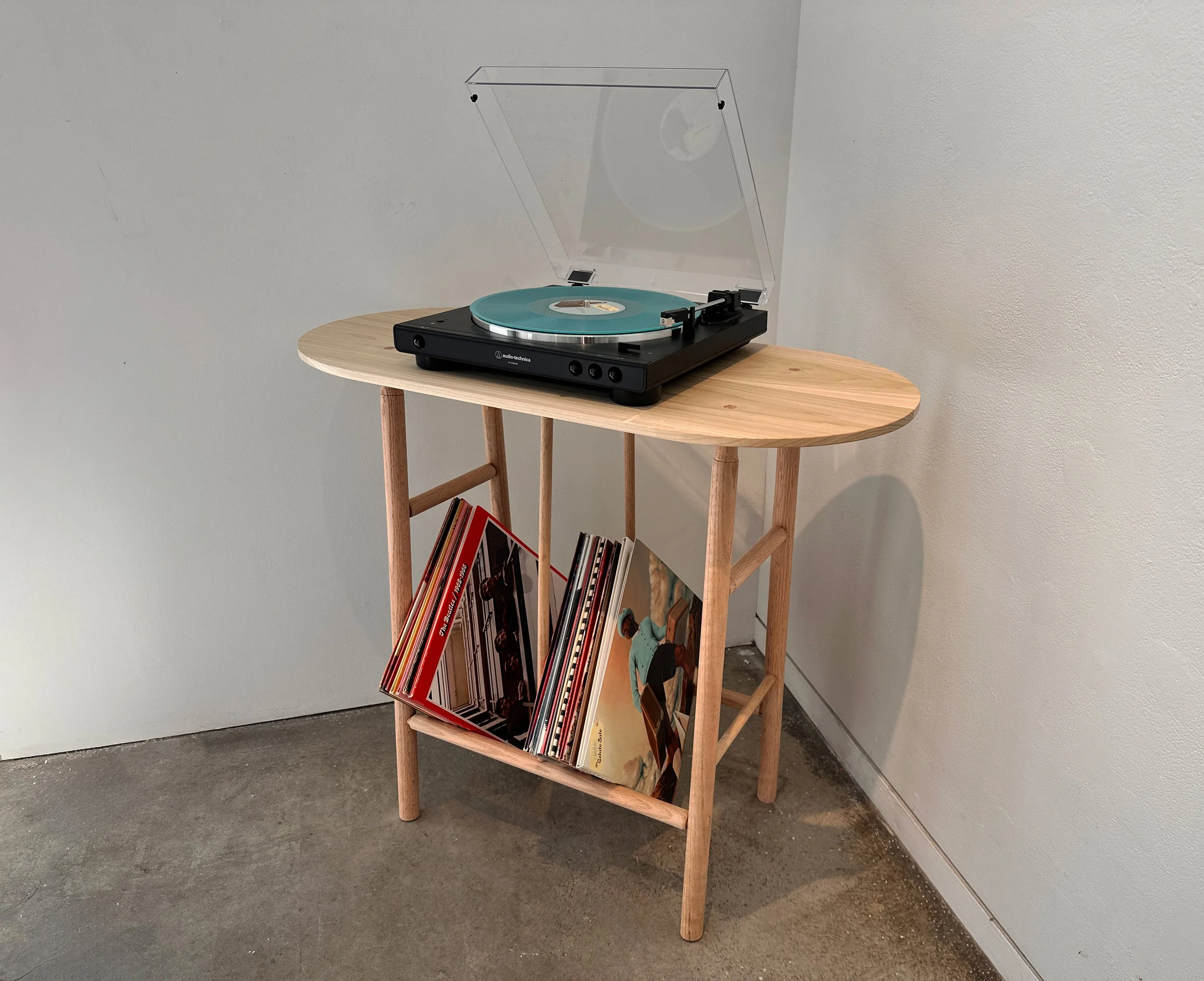 For this project I took most of my form inspiration from the vinyl records that are intended to be stored on this table. The rounded ends are clearly reminiscent of the shape of a vinyl record, and all of the measurements are intended to accommodate the standard size of a LP record.