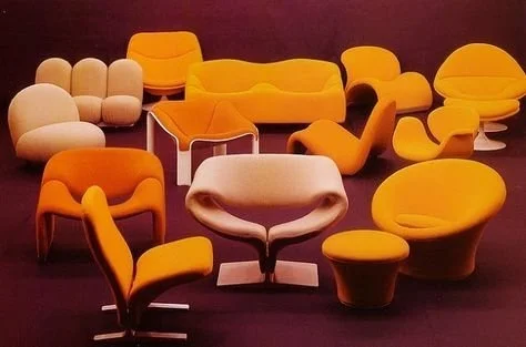 For this project I wanted my final product to feel very fun, and make it something people would want to play with and interact with. Because of this I took a lot of inspiration from retro furniture, especially looking towards funky shapes and the color orange.