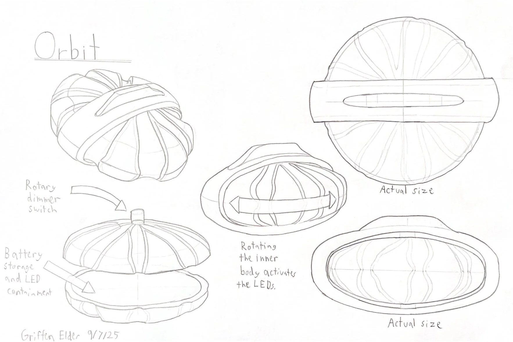Throughout the ideation process I put most of my focus on motion and user interaction. I wanted the activation to be more interesting than merely hitting a button to turn the light on. I wanted the user to be interested in the product and excited to play with and use it.