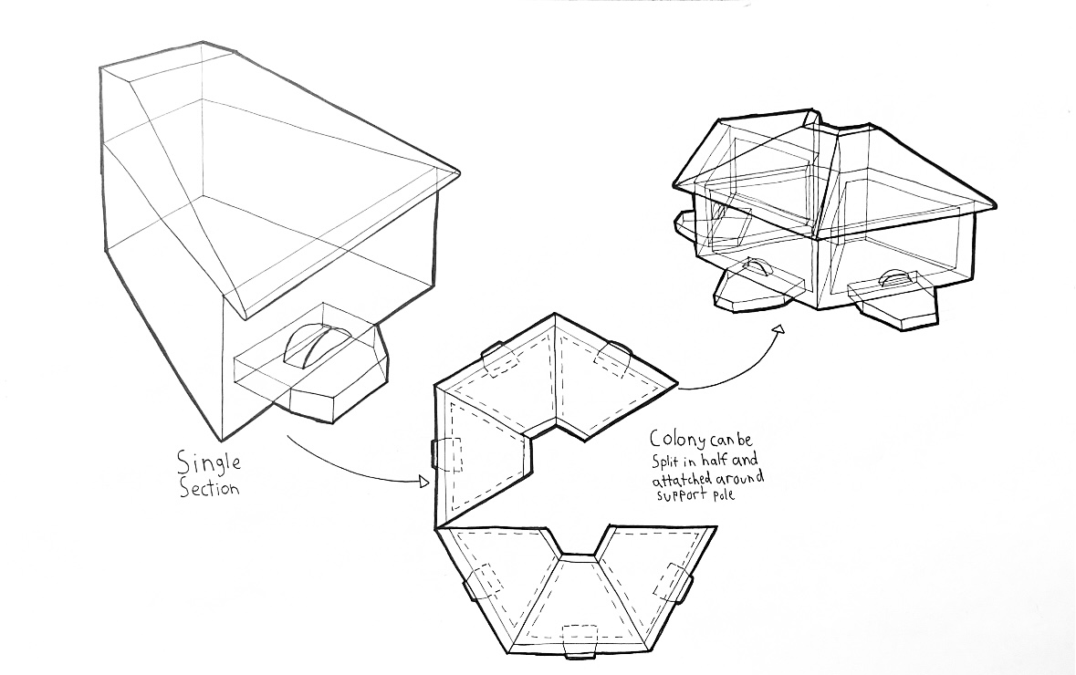 Early on in my research I came across a species called the Purple Martin. What stood out to me about this bird was their desire to live in colonies with other Purple Martins. This community aspect became the core of my design.